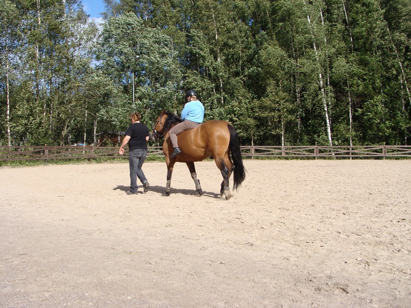 Lopuksi nostin vasemman laukan, joka alkuvaikeuden jälkeen, nousi ihan hienosti. Sitten poni poljaise etujalkaansa ja huomasin, että sen ravissa oli jotain outoa joten siirsin sen käyntiin ja sanoin asiasta valkulle, joka katsoi ja totesi että poika astui etujalkansa päälle. No ei voi mitään, tulin sitten alas ja talutin loppukäynnit.